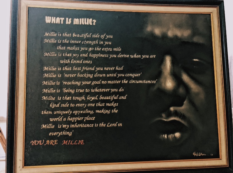 As I surveyed my surroundings, one particular art piece drew my attention from afar; it was entitled ‘What is Millie?’. I inched closer to the canvas and when I was done reading the scripture on the painting, I felt attached to the art despite its dark and gloomy features. I stared at it for another long second as though the words will magically engrave itself at the back of my mind.