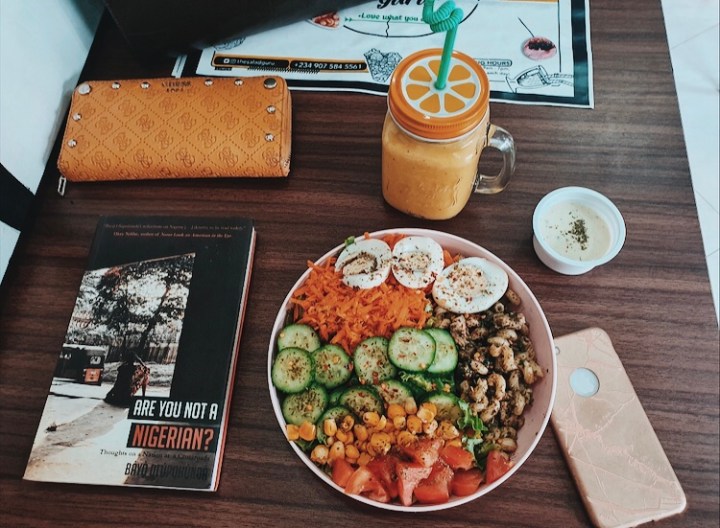 I ordered their Spicy Chicken Salad plus the Pesto Pasta (N2,500) with their Mango Madness Smoothie (N1,200).